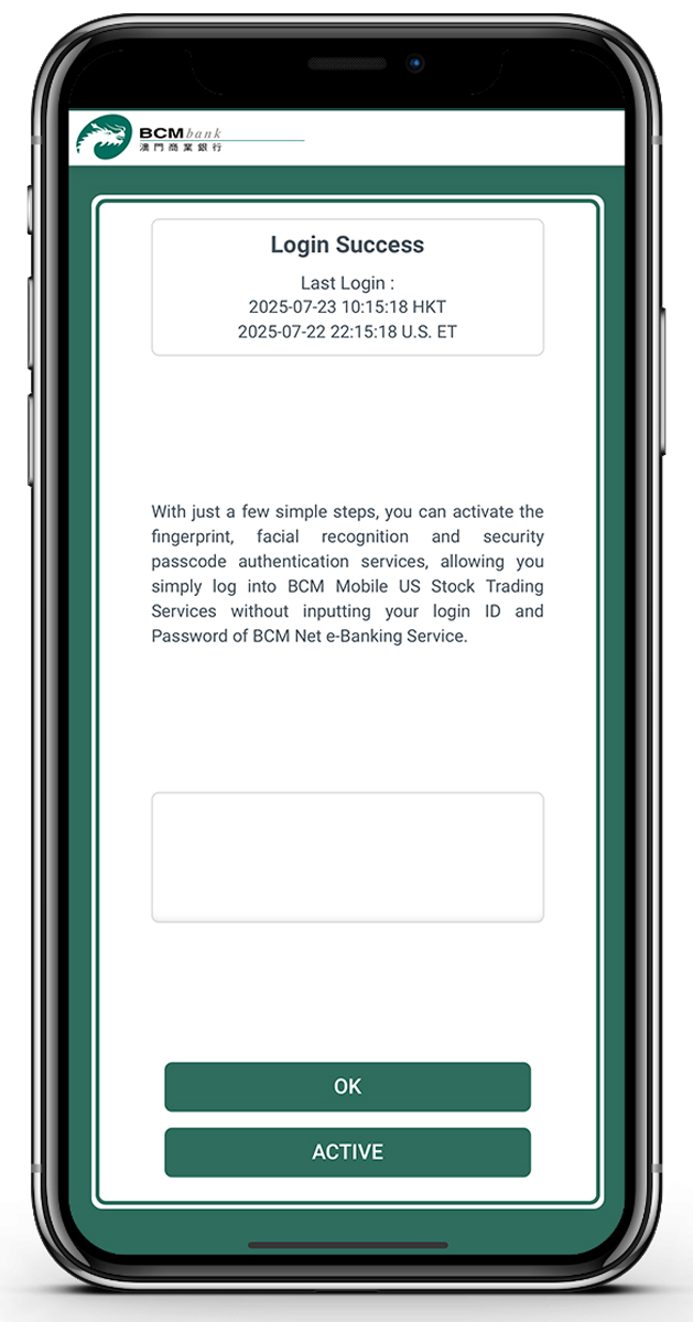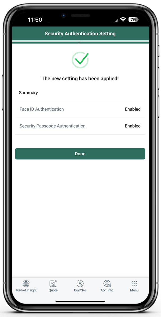 3.4 If you choose to activate the Fingerprint Authentication, please touch the fingerprint sensor on your mobile device to verify the fingerprint;