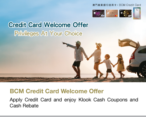 Applicants have to successfully apply for BCM Credit Card (“Credit Card”) of Banco Comercial de Macau, S.A. (“BCM”) between 19 January and 30 April 2026, with both dates inclusive (“Promotion Period”) to enjoy the offer. |