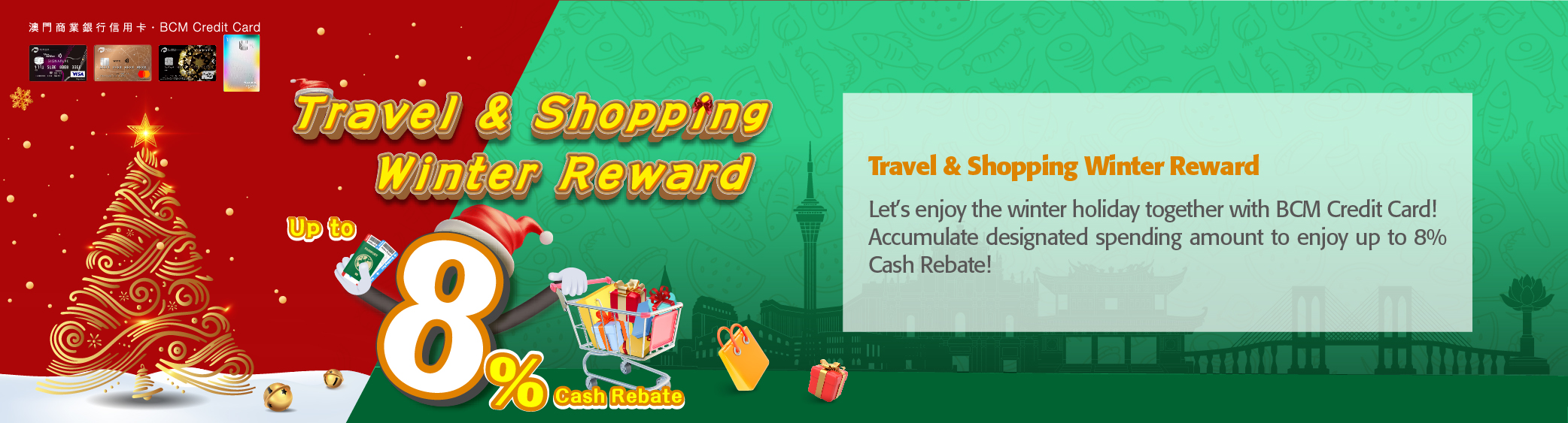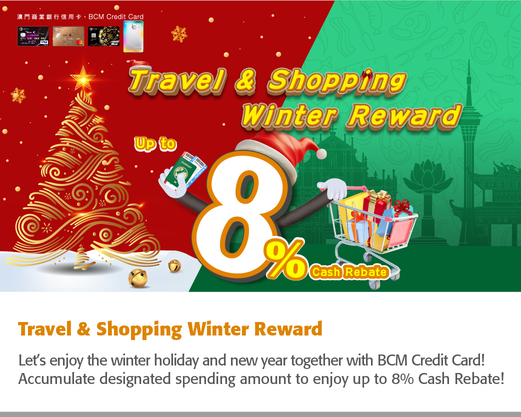 - The Promotion is applicable to Credit Cards and Co-branded Credit Cards (including Principal Cards and Supplementary Cards) issued by Banco Comercial de Macau, S.A. (“BCM”) (“Eligible Credit Card”).