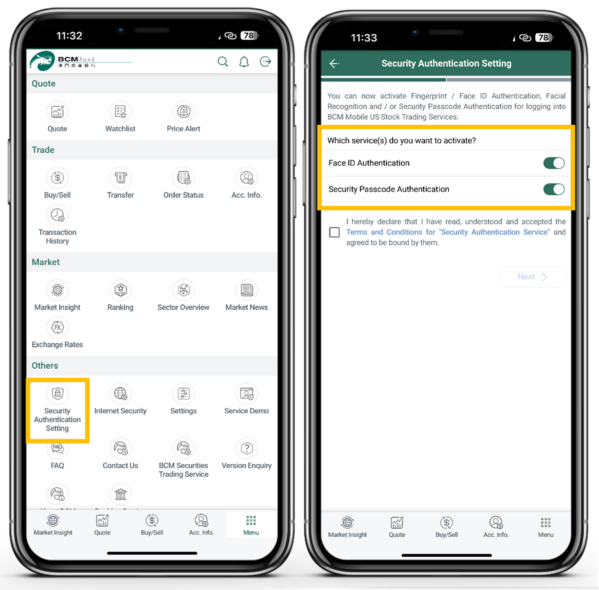 Before clicking to “Next” button, please read through and accept the “Terms & Conditions” for Security Authentication Service.