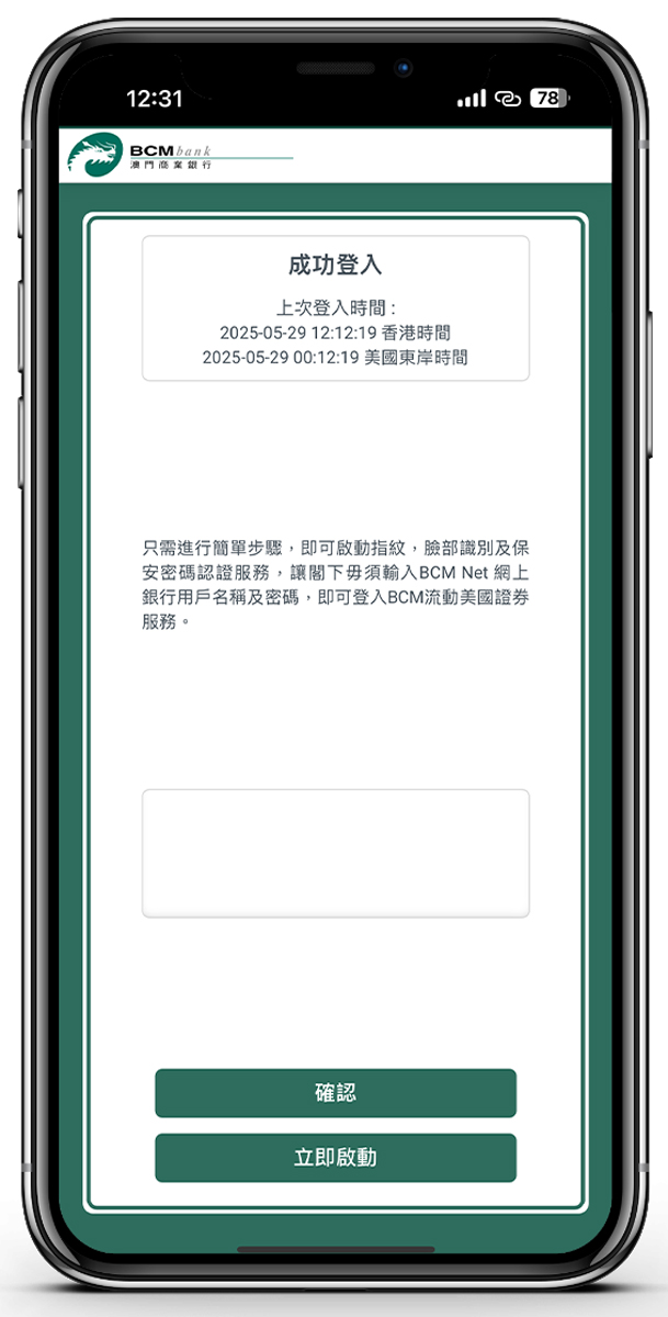 3.2 根據客戶所使用之流動裝置型號及按照頁面之指示,請選擇啟動一種或多種認證方式︰