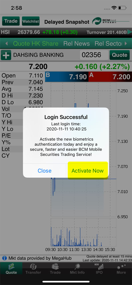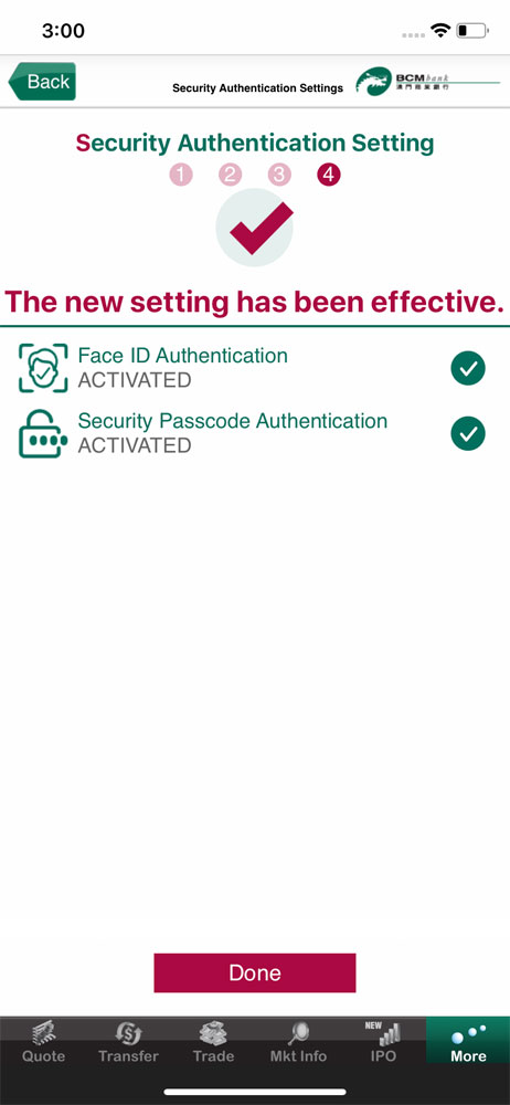 6. According to your mobile device and follow the instruction on-screen, please select one or more authentication method(s) on the setting list for activation: