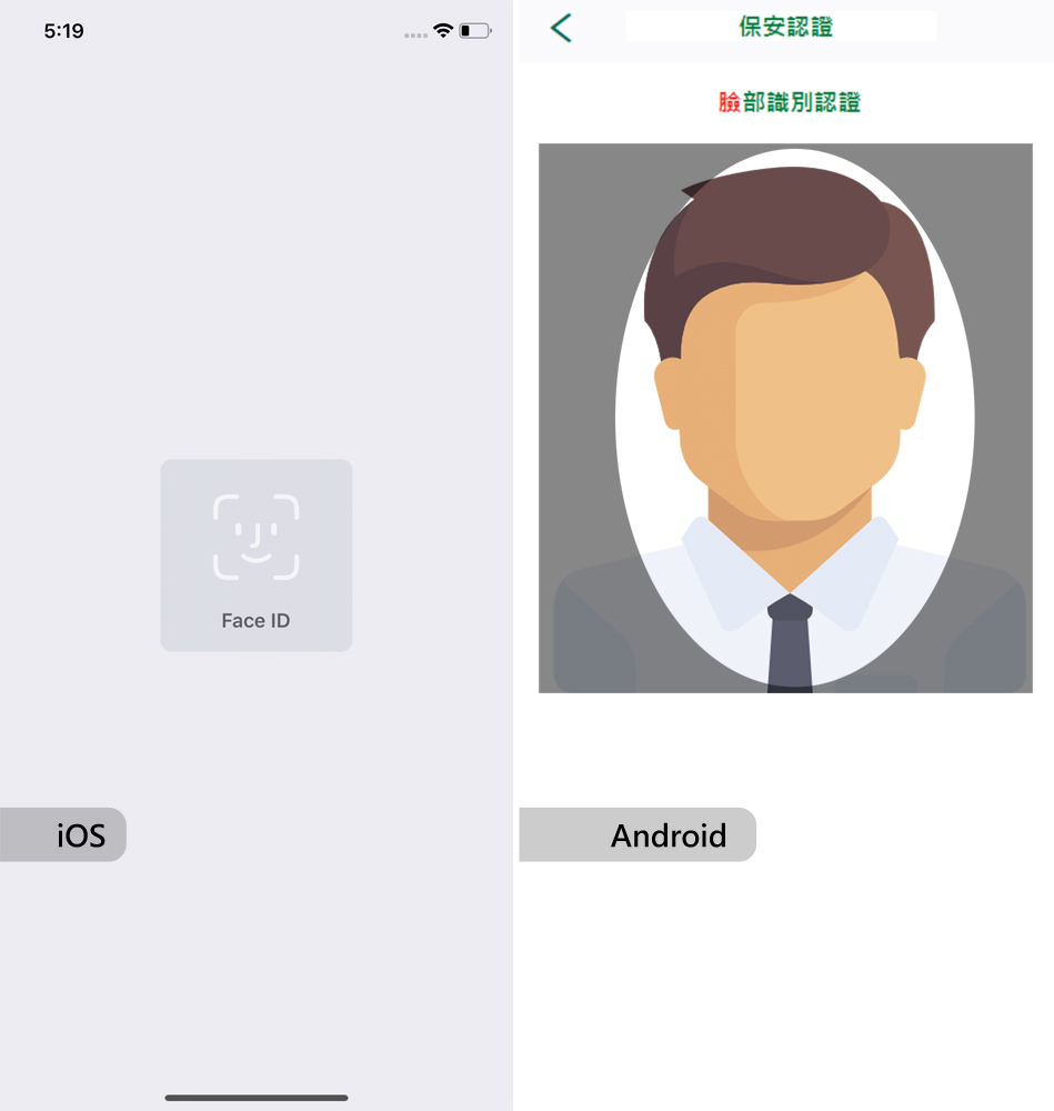 Remarks: the methods of authentication will vary according to the supported model(s) of the mobile device