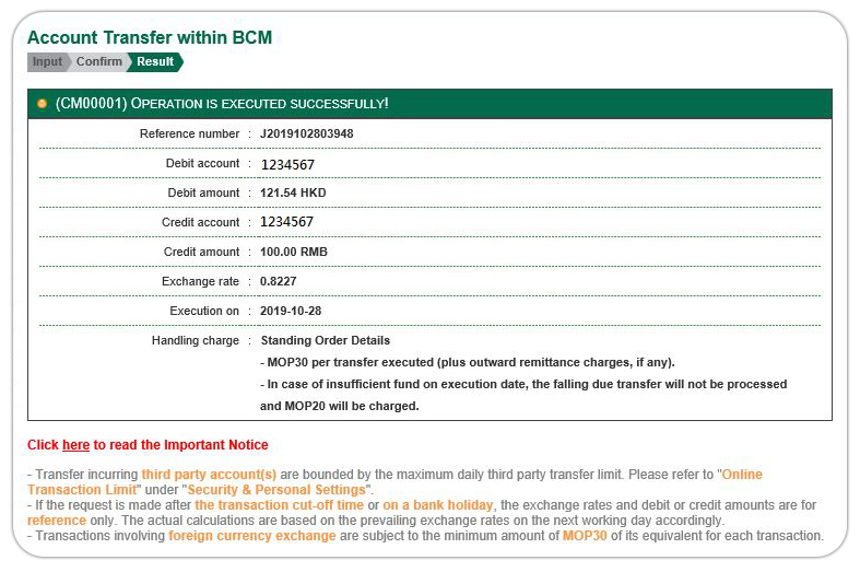 4. Once you perform a designated transaction on BCM Net e-Banking Service which requires transaction authorization, the screen will display the following steps regarding security authentication.