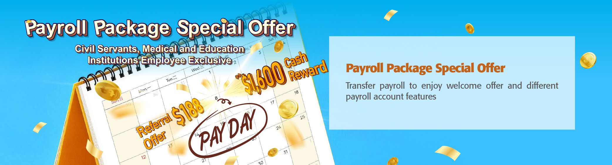 For Payroll Service with monthly salary of MOP50,000 above, the customer can enjoy MOP1,600 Cash Reward. |