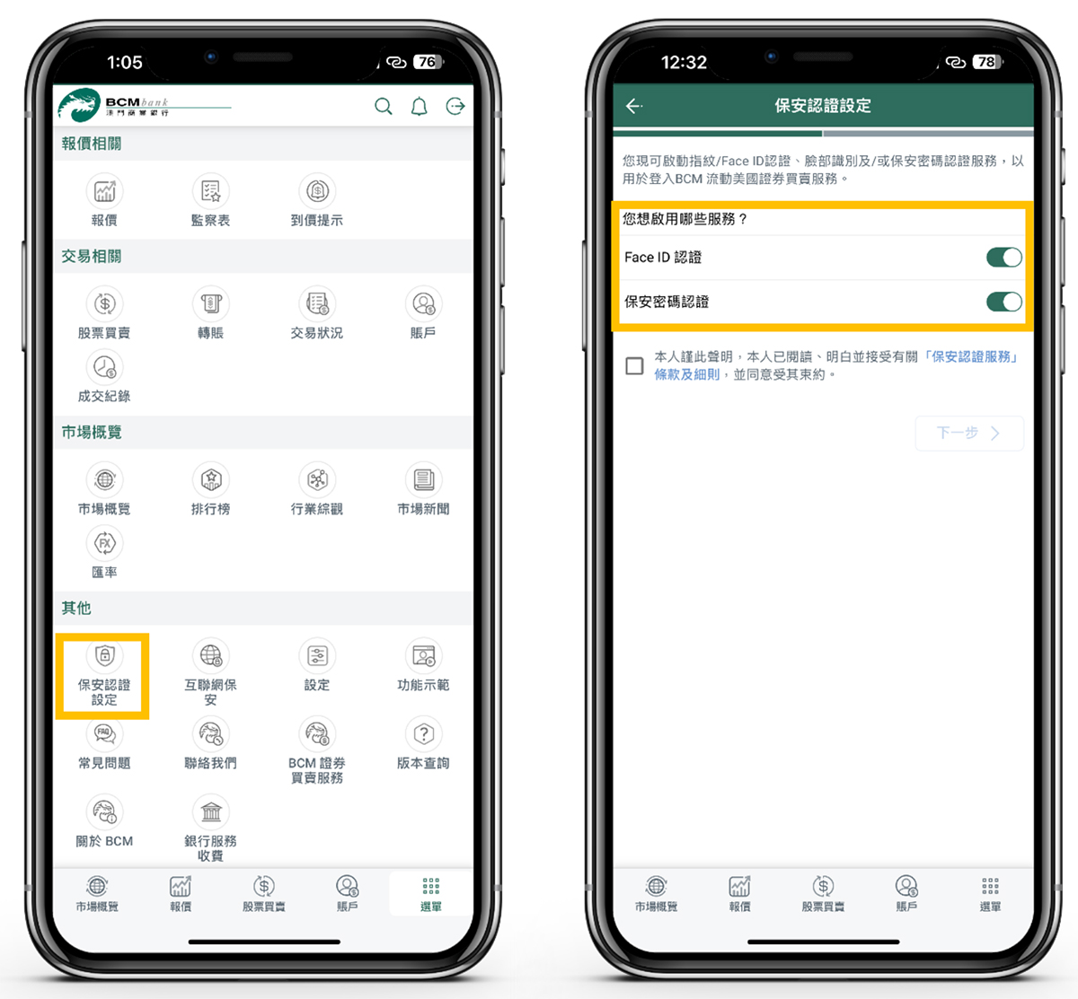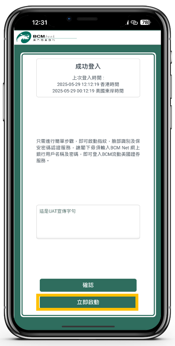 3.2 根據客戶所使用之流動裝置型號及按照頁面之指示,請選擇啟動一種或多種認證方式︰