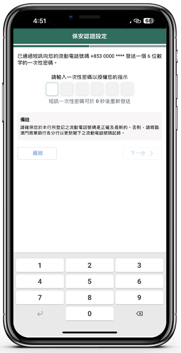 3.3 客戶已記錄於本行之流動電話號碼將收到由本行發出之短訊一次性密碼以驗證指示。